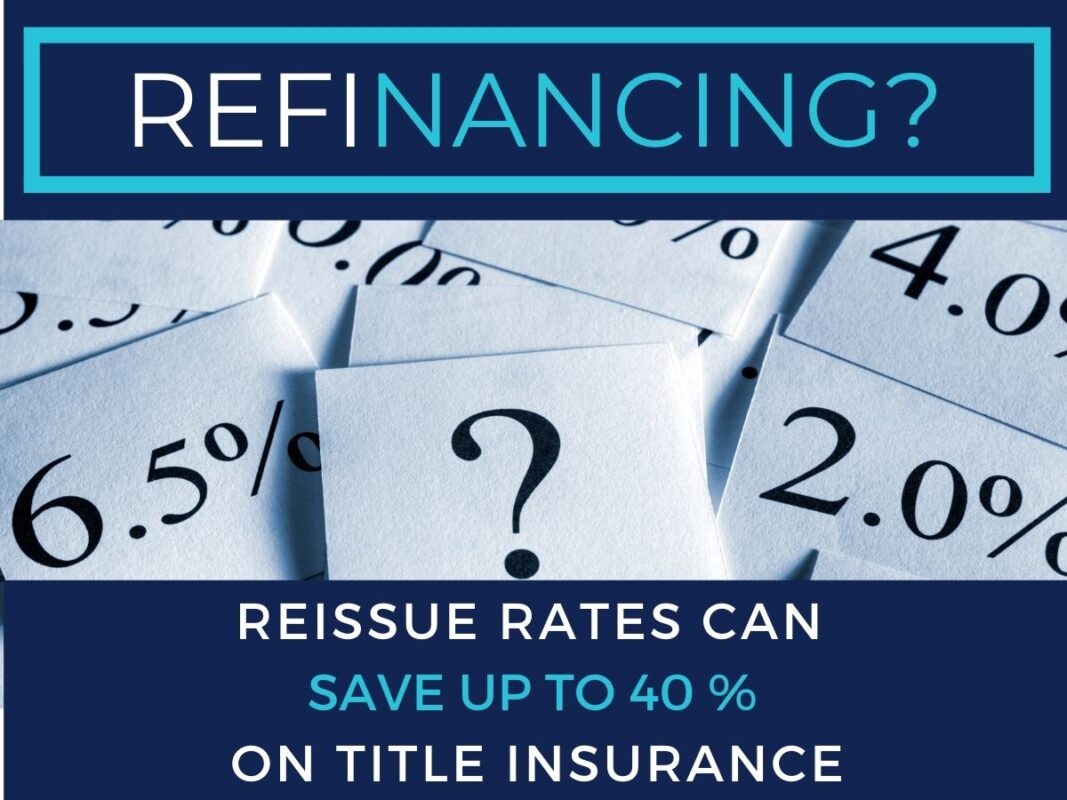 Title insurance refinance reissue rate. Title companies may offer a reissue rate to keep your business so contact the title company on your current loan for a quote. Policy coverage for500000 with a reissue rate discount. Previously without an existing owners title insurance policy a DC refinance for 500000 would have cost 2100 for the lenders title insurance premium.